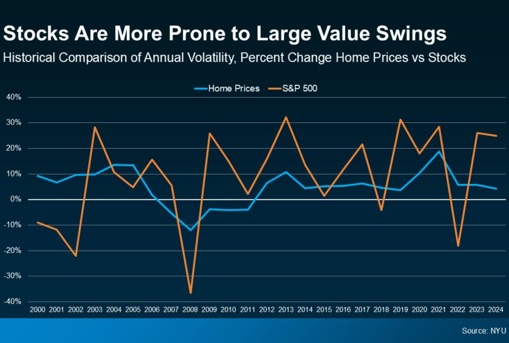 So, if you’re worried after the recent ups and downs in your stock portfolio, rest assured, your home isn’t likely to experience the same volatility.