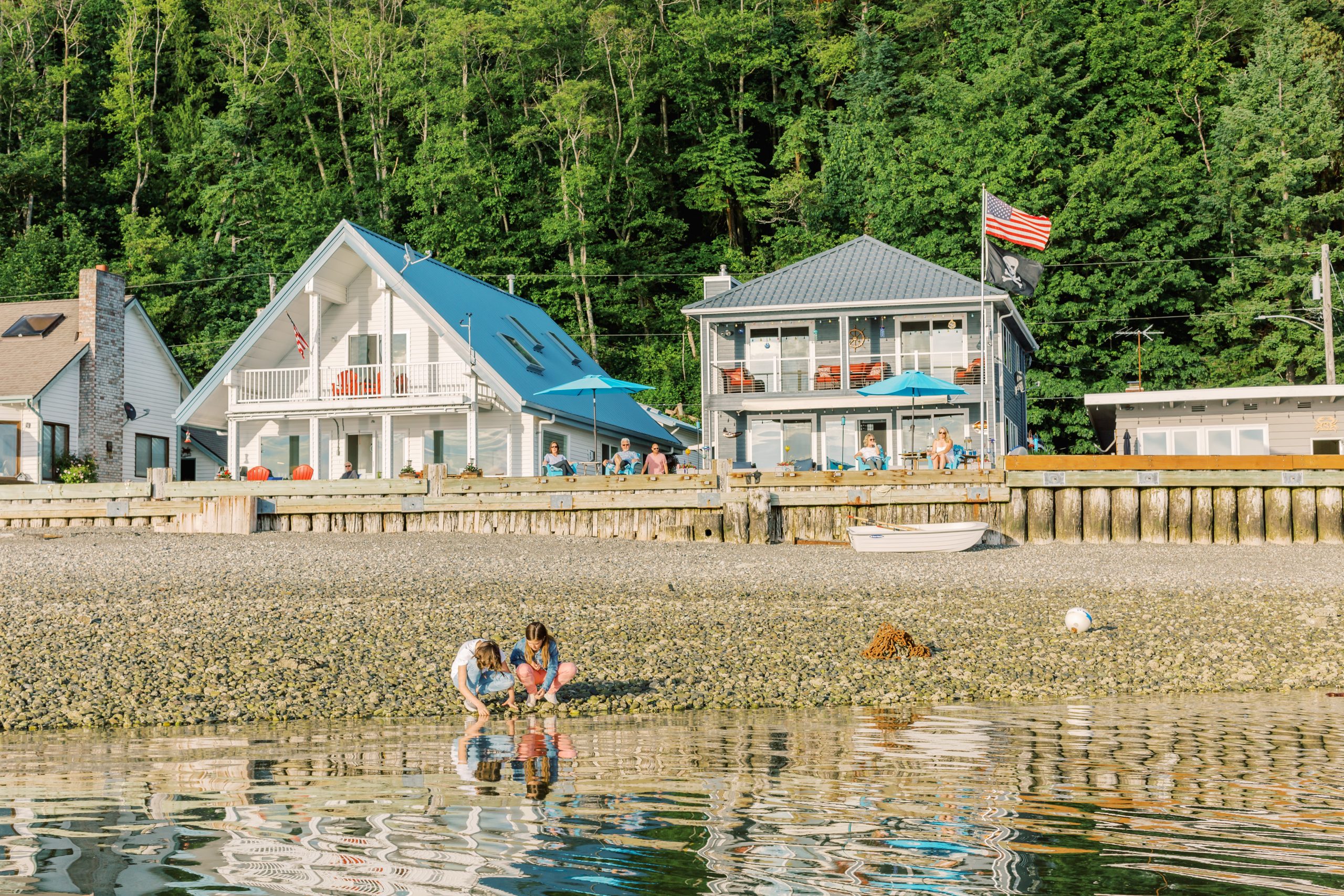 The waters of McKees Beach offer a protected habitat for maritime wildlife, while the peaceful shoreline welcomes animals year-round. From Gray whales in March and Orca sightings to Dall’s porpoises, Bald eagles, and deer, nature lovers can enjoy the Pacific Northwest’s beauty right from their doorstep. With the Olympic Mountains and Mount Rainier as a stunning backdrop, residents and visitors alike gather on patios and along the shore to witness these unforgettable moments.
